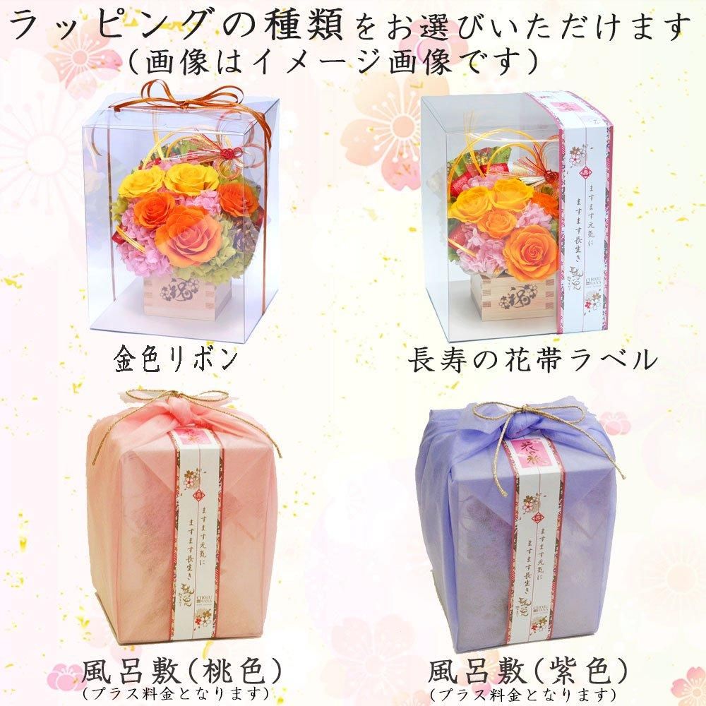 ※枡フラワーの正面とする焼印は、「祝」または「長寿の花」ロゴのどちらかを選択いただけます。
